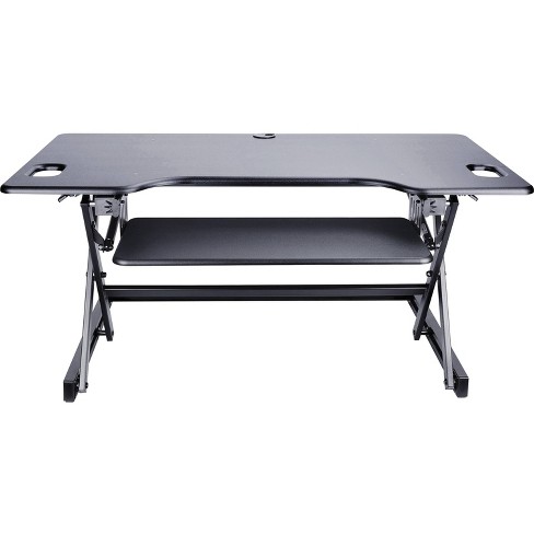 This deluxe sit to stand desk riser comes in black and features a user friendly design.